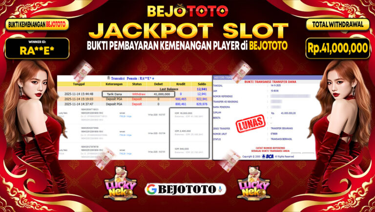 BEJOTOTO – Selamat kepada User id: RA**E* Telah berhasil mendapatkan kemenangan besar pada permainan SLOT LUCKY NEKO Dengan kemenangan Sebesar Rp.41,000,000-. Setelah mengisi formulir withdraw dengan kurung waktu hanya 5 – 10 menit pihak BEJOTOTO sudah melakukan transfer kepada pemilik Userid dan dana sudah dapat di cairkan oleh pemenang. Bukti pembayaran yang kami berikan merupakan bukti pembayaran yang SAH / VALID yang…