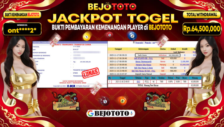 BEJOTOTO JACKPOT TOGEL TOTOMACAU 4D Rp.64,500,000,- LUNAS!!