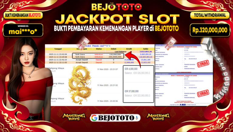 BEJOTOTO JACKPOT SLOT MAHJONG WAYS Rp.320,000,000- LUNAS!!