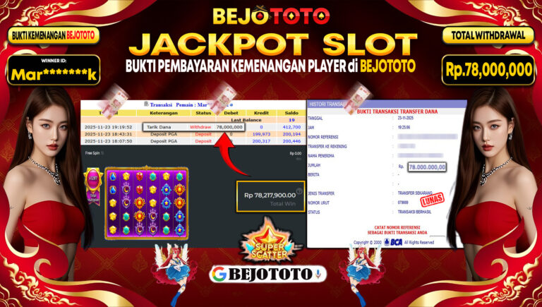 BEJOTOTO – Selamat kepada User id : Mar*******k Telah berhasil mendapatkan kemenangan besar pada permainan SLOT PRAGMATIC PRAGMATIC STARLIGHT PRINCESS SUPER SCATTER Dengan kemenangan Sebesar Rp.78,000,000,-. Setelah mengisi formulir withdraw dengan kurung waktu hanya 5 – 10 menit pihak BEJOTOTO sudah melakukan transfer kepada pemilik Userid dan dana sudah dapat di cairkan oleh pemenang. Bukti pembayaran yang kami berikan merupakan bukti…