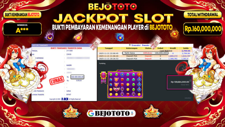 BEJOTOTO – Selamat kepada User id : A*** Telah berhasil mendapatkan kemenangan besar pada permainan SLOT PRAGMATIC PRAGMATIC STARLIGHT PRINCESS SUPER SCATTER Dengan kemenangan Sebesar Rp.160,000,000,-. Setelah mengisi formulir withdraw dengan kurung waktu hanya 5 – 10 menit pihak BEJOTOTO sudah melakukan transfer kepada pemilik Userid dan dana sudah dapat di cairkan oleh pemenang. Bukti pembayaran yang kami berikan merupakan bukti…