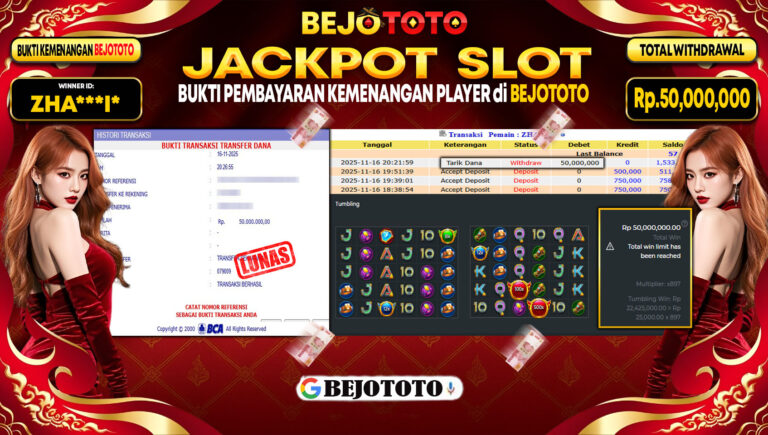 BEJOTOTO – Selamat kepada User id : ZHA***I* Telah berhasil mendapatkan kemenangan besar pada permainan SLOT PRAGMATIC SUPER MANIA SLOT MANIA Dengan kemenangan Sebesar Rp.50,000,000,-. Setelah mengisi formulir withdraw dengan kurung waktu hanya 5 – 10 menit pihak BEJOTOTO sudah melakukan transfer kepada pemilik Userid dan dana sudah dapat di cairkan oleh pemenang. Bukti pembayaran yang kami berikan merupakan bukti pembayaran…