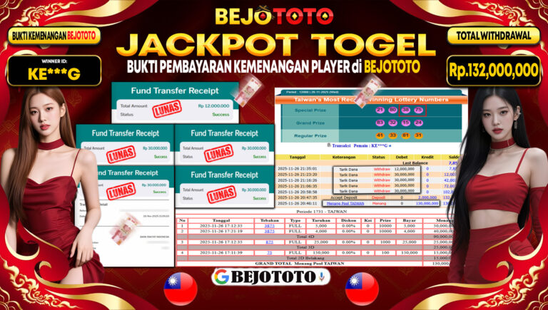 BEJOTOTO JACKPOT TOGEL TAIWAN Rp.132,000,000,- LUNAS!!
