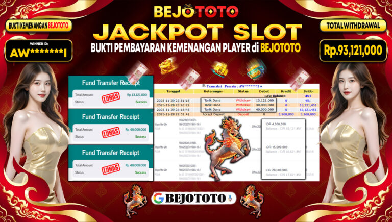 BEJOTOTO – Selamat kepada User id : AW*******I Telah berhasil mendapatkan kemenangan besar pada permainan SLOT WAYS OF THE QILIN Dengan kemenangan Sebesar Rp.93,121,000-. Setelah mengisi formulir withdraw dengan kurung waktu hanya 5 – 10 menit pihak BEJOTOTO sudah melakukan transfer kepada pemilik Userid dan dana sudah dapat di cairkan oleh pemenang. Bukti pembayaran yang kami berikan merupakan bukti…