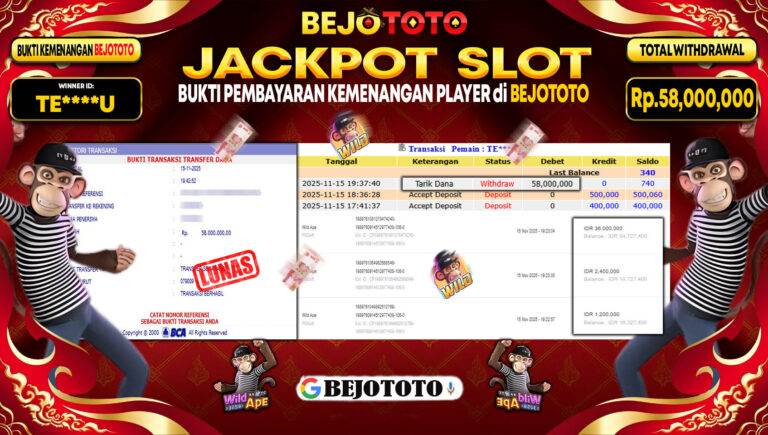 BEJOTOTO JACKPOT SLOT WILD APE Rp.58,000,000- LUNAS!!