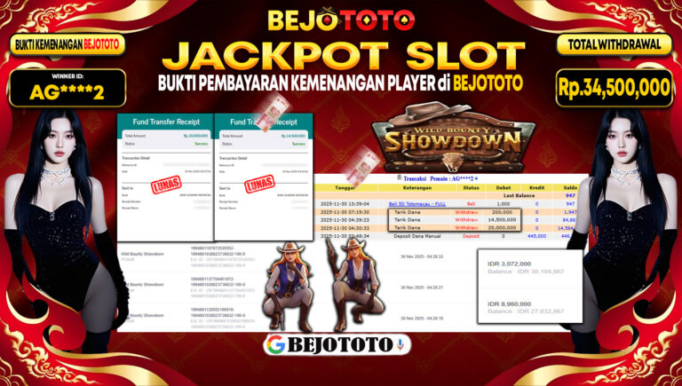 BEJOTOTO – Selamat kepada User id : AG****2 Telah berhasil mendapatkan kemenangan besar pada permainan WILD BOUNTY SHOWDOWN Dengan kemenangan Sebesar Rp.34,500,000-. Setelah mengisi formulir withdraw dengan kurung waktu hanya 5 – 10 menit pihak BEJOTOTO sudah melakukan transfer kepada pemilik Userid dan dana sudah dapat di cairkan oleh pemenang. Bukti pembayaran yang kami berikan merupakan bukti pembayaran yang SAH / VALID yang…
