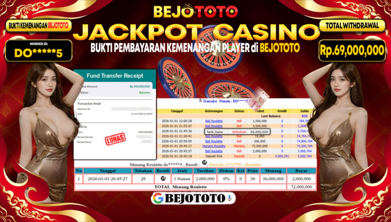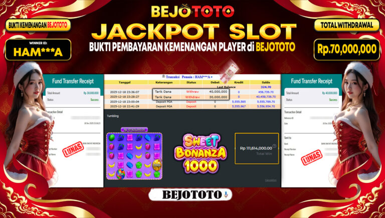 BEJOTOTO – Selamat kepada User id :HAM***A Telah berhasil mendapatkan kemenangan besar pada permainan SLOT PRAGMATIC PRAGMATIC SWEET BONANZA 1000 Dengan kemenangan Sebesar Rp.70,000,000,-. Setelah mengisi formulir withdraw dengan kurung waktu hanya 5 – 10 menit pihak BEJOTOTO sudah melakukan transfer kepada pemilik Userid dan dana sudah dapat di cairkan oleh pemenang. Bukti pembayaran yang kami berikan merupakan bukti pembayaran…