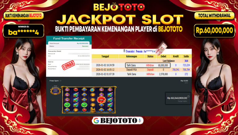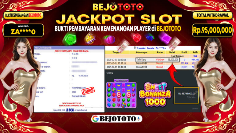 BEJOTOTO – Selamat kepada User id : ZA****0 Telah berhasil mendapatkan kemenangan besar pada permainan SLOT PRAGMATIC PRAGMATIC BONANZA 1000 Dengan kemenangan Sebesar Rp.95,000,000,-. Setelah mengisi formulir withdraw dengan kurung waktu hanya 5 – 10 menit pihak BEJOTOTO sudah melakukan transfer kepada pemilik Userid dan dana sudah dapat di cairkan oleh pemenang. Bukti pembayaran yang kami berikan merupakan bukti pembayaran yang SAH…