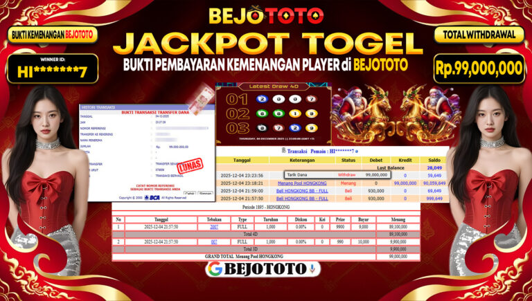 BEJOTOTO JACKPOT TOGEL HONGKONG LOTTO Rp.99,000,000,- LUNAS!!
