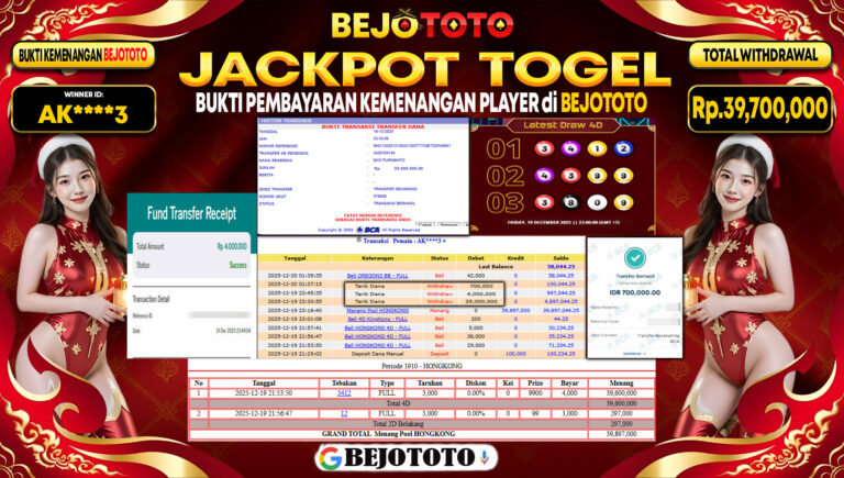 BEJOTOTO JACKPOT TOGEL HONGKONG LOTTO Rp.39,700,000,- LUNAS!!