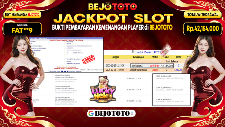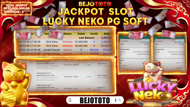 BEJOTOTO JACKPOT SLOT LUCKY NEKO Rp.92,000,000- LUNAS!!