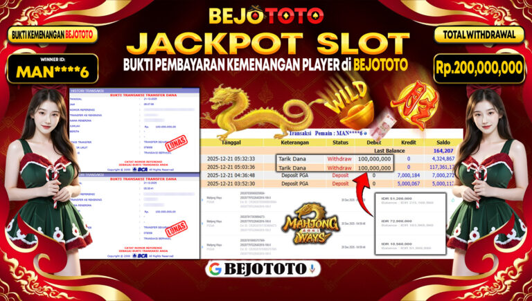 BEJOTOTO – Selamat kepada User id : MAN****6 Telah berhasil mendapatkan kemenangan besar pada permainan SLOT MAHJONG WAYS Dengan kemenangan Sebesar Rp.200,000,000-. Setelah mengisi formulir withdraw dengan kurung waktu hanya 5 – 10 menit pihak BEJOTOTO sudah melakukan transfer kepada pemilik Userid dan dana sudah dapat di cairkan oleh pemenang. Bukti pembayaran yang kami berikan merupakan bukti pembayaran yang SAH /…