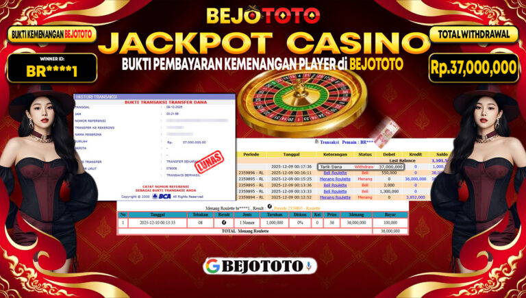 BEJOTOTO – Selamat kepada User id : BR****1 Telah berhasil mendapatkan kemenangan besar pada permainan LIVE CASINO ROULETTE GAMES Dengan kemenangan Sebesar Rp.37,000,000,-. Setelah mengisi formulir withdraw dengan kurung waktu hanya 5 – 10 menit pihak BEJOTOTO sudah melakukan transfer kepada pemilik Userid dan dana sudah dapat di cairkan oleh pemenang. Bukti pembayaran yang kami berikan merupakan bukti pembayaran yang SAH /…