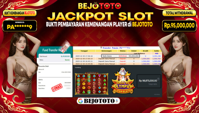 BEJOTOTO – Selamat kepada User id : K****23 Telah berhasil mendapatkan kemenangan besar pada permainan SLOT PRAGMATIC GATES OF OLYMPUS DICE Dengan kemenangan Sebesar Rp.95,000,000,-. Setelah mengisi formulir withdraw dengan kurung waktu hanya 5 – 10 menit pihak BEJOTOTO sudah melakukan transfer kepada pemilik Userid dan dana sudah dapat di cairkan oleh pemenang. Bukti pembayaran yang kami berikan merupakan bukti pembayaran…