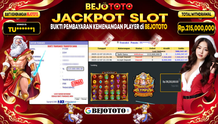 BEJOTOTO – Selamat kepada User id : TU******1 Telah berhasil mendapatkan kemenangan besar pada permainan SLOT PRAGMATIC GATES OF OLYMPUS SUPER SCATTER Dengan kemenangan Sebesar Rp.215,000,000,-. Setelah mengisi formulir withdraw dengan kurung waktu hanya 5 – 10 menit pihak BEJOTOTO sudah melakukan transfer kepada pemilik Userid dan dana sudah dapat di cairkan oleh pemenang. Bukti pembayaran yang kami berikan merupakan bukti…