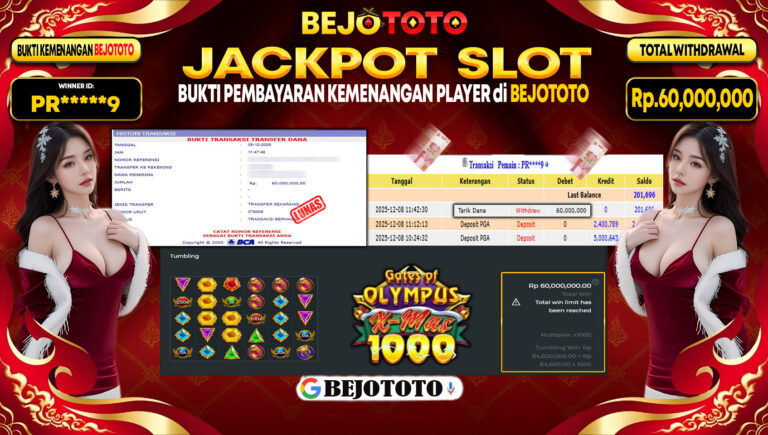 BEJOTOTO JACKPOT SLOT PRAGMATIC GATES OF OLYMPUS X-MAS 1000 Rp.60,000,000,- LUNAS!!