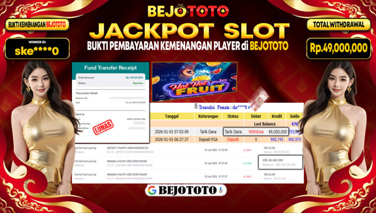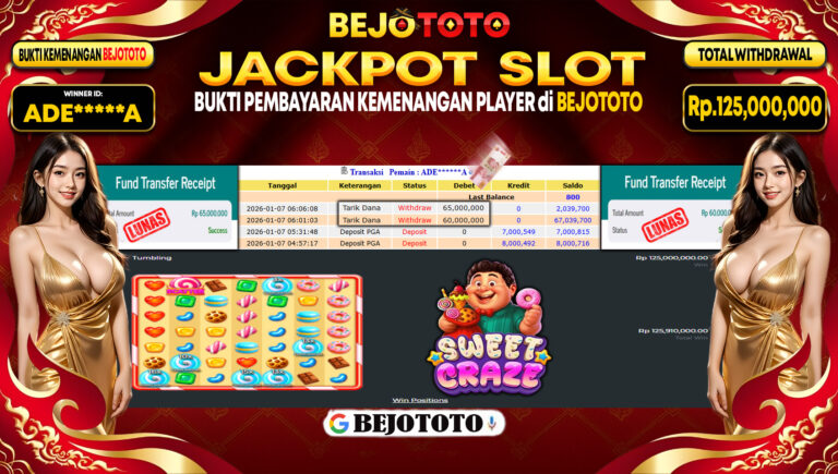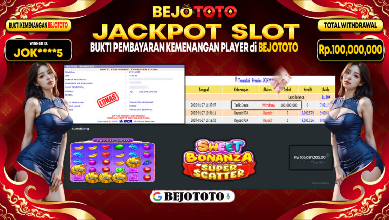 BEJOTOTO – Selamat kepada User id : JOK****5 Telah berhasil mendapatkan kemenangan besar pada permainan SLOT PRAGMATIC PRAGMATIC SWEET BONANZA SUPER SCATTER Dengan kemenangan Sebesar Rp.100,000,000,-. Setelah mengisi formulir withdraw dengan kurung waktu hanya 5 – 10 menit pihak BEJOTOTO sudah melakukan transfer kepada pemilik Userid dan dana sudah dapat di cairkan oleh pemenang. Bukti pembayaran yang kami berikan merupakan bukti pembayaran…