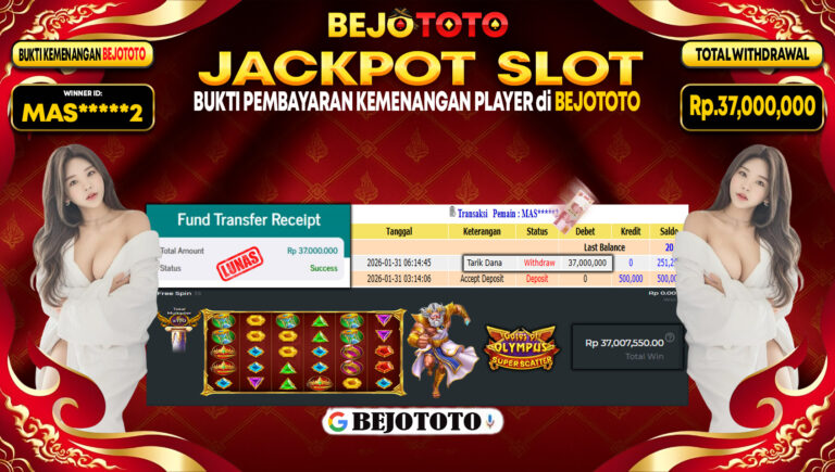 BEJOTOTO – Selamat kepada User id : MAS*****2 Telah berhasil mendapatkan kemenangan besar pada permainan SLOT PRAGMATIC GATES OF OLYMPUS SUPER SCATTER Dengan kemenangan Sebesar Rp.37,000,000,-. Setelah mengisi formulir withdraw dengan kurung waktu hanya 5 – 10 menit pihak BEJOTOTO sudah melakukan transfer kepada pemilik Userid dan dana sudah dapat di cairkan oleh pemenang. Bukti pembayaran yang kami berikan merupakan bukti…