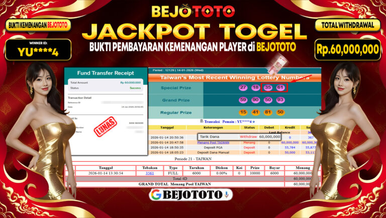 BEJOTOTO JACKPOT TOGEL TAIWAN Rp.60,000,000,- LUNAS!!