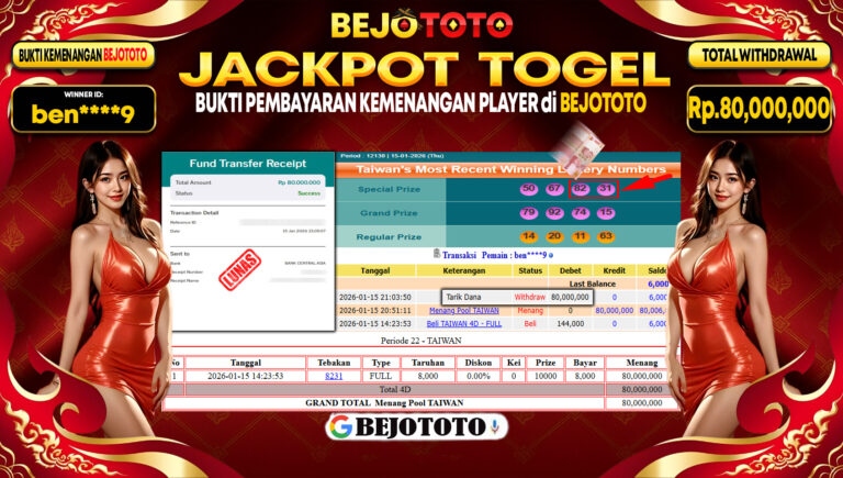 BEJOTOTO JACKPOT TOGEL TAIWAN Rp.80,000,000,- LUNAS!!