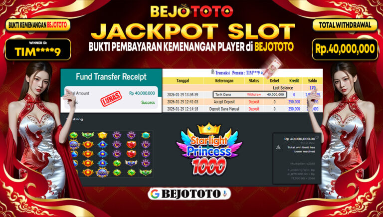 BEJOTOTO – Selamat kepada User id : TIM****9 Telah berhasil mendapatkan kemenangan besar pada permainan SLOT PRAGMATIC PRAGMATIC STARLIGHT PRINCESS 1000 Dengan kemenangan Sebesar Rp.40,000,000,-. Setelah mengisi formulir withdraw dengan kurung waktu hanya 5 – 10 menit pihak BEJOTOTO sudah melakukan transfer kepada pemilik Userid dan dana sudah dapat di cairkan oleh pemenang. Bukti pembayaran yang kami berikan merupakan bukti pembayaran yang SAH…