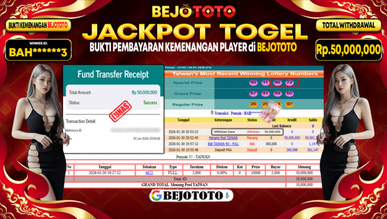 BEJOTOTO JACKPOT TOGEL TAIWAN Rp.50,000,000,- LUNAS!!