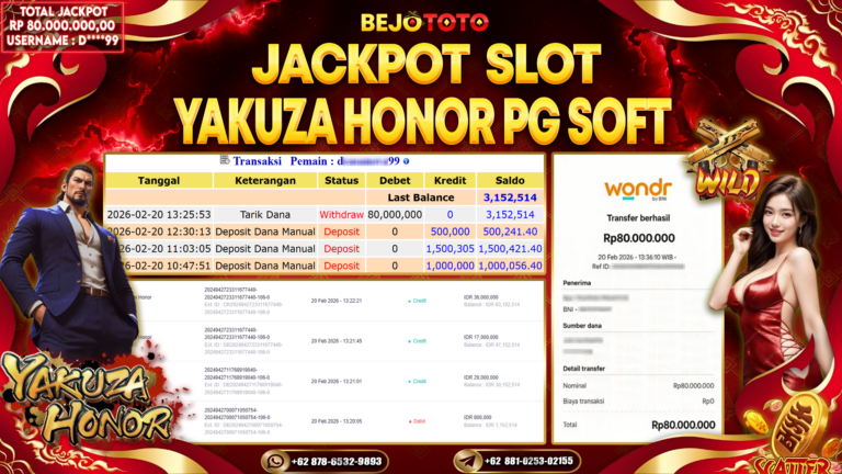 BEJOTOTO – Selamat kepada User id : D****99 Telah berhasil mendapatkan kemenangan besar pada permainan SLOT YAKUZA HONOR Dengan kemenangan Sebesar Rp.80,000,000-. Setelah mengisi formulir withdraw dengan kurung waktu hanya 5 – 10 menit pihak BEJOTOTO sudah melakukan transfer kepada pemilik Userid dan dana sudah dapat di cairkan oleh pemenang. Bukti pembayaran yang kami berikan merupakan bukti pembayaran yang SAH…