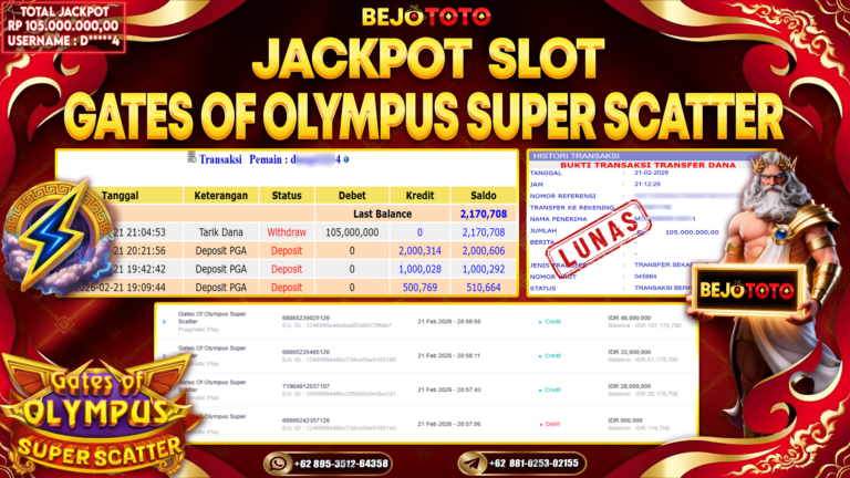 BEJOTOTO JACKPOT SLOT PRAGMATIC GATES OF OLYMPUS SUPER SCATTER Rp.105,000,000,- LUNAS!!!!