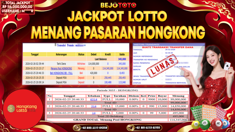 BEJOTOTO JACKPOT TOGEL HONGKONG LOTTO Rp.114,000,000,- LUNAS!!