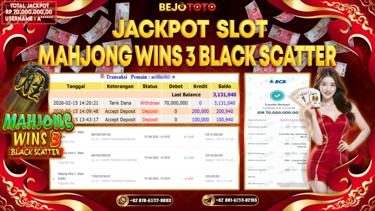 BEJOTOTO JACKPOT PRAGMATIC MAHJONG WINS 3 – BLACK SCATTER Rp.70,000,000,- LUNAS!!