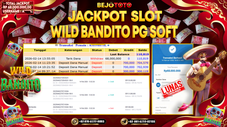 BEJOTOTO – Selamat kepada User id : A*****L Telah berhasil mendapatkan kemenangan besar pada permainan SLOT WILD BANDITO Dengan kemenangan Sebesar Rp.68,000,000-. Setelah mengisi formulir withdraw dengan kurung waktu hanya 5 – 10 menit pihak BEJOTOTO sudah melakukan transfer kepada pemilik Userid dan dana sudah dapat di cairkan oleh pemenang. Bukti pembayaran yang kami berikan merupakan bukti pembayaran yang SAH…