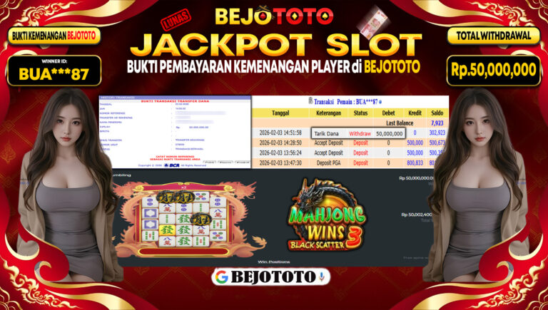 BEJOTOTO JACKPOT PRAGMATIC MAHJONG WINS 3 – BLACK SCATTER Rp.50,000,000,- LUNAS!!