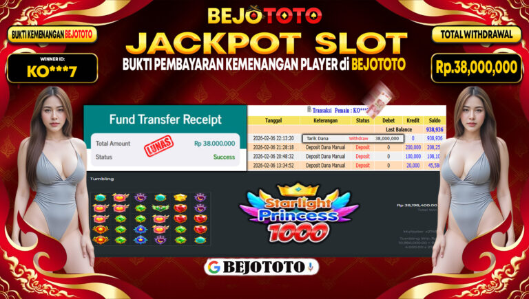 BEJOTOTO – Selamat kepada User id : KO***7 Telah berhasil mendapatkan kemenangan besar pada permainan SLOT PRAGMATIC PRAGMATIC STARLIGHT PRINCESS 1000 Dengan kemenangan Sebesar Rp.38,000,000,-. Setelah mengisi formulir withdraw dengan kurung waktu hanya 5 – 10 menit pihak BEJOTOTO sudah melakukan transfer kepada pemilik Userid dan dana sudah dapat di cairkan oleh pemenang. Bukti pembayaran yang kami berikan merupakan bukti pembayaran yang SAH…