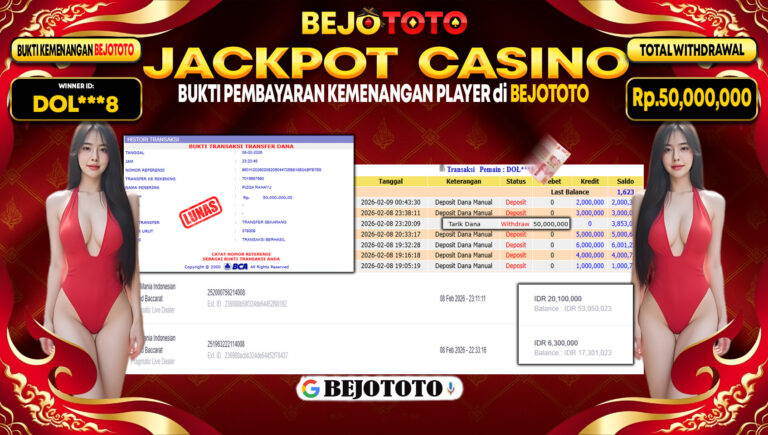 BEJOTOTO – Selamat kepada User id : DOL***8 Telah berhasil mendapatkan kemenangan besar pada permainan LIVE CASINO MANIA INDONESIAN SPEED BACCARAT Dengan kemenangan Sebesar Rp.50,000,000,-. Setelah mengisi formulir withdraw dengan kurung waktu hanya 5 – 10 menit pihak BEJOTOTO sudah melakukan transfer kepada pemilik Userid dan dana sudah dapat di cairkan oleh pemenang. Bukti pembayaran yang kami berikan merupakan bukti…
