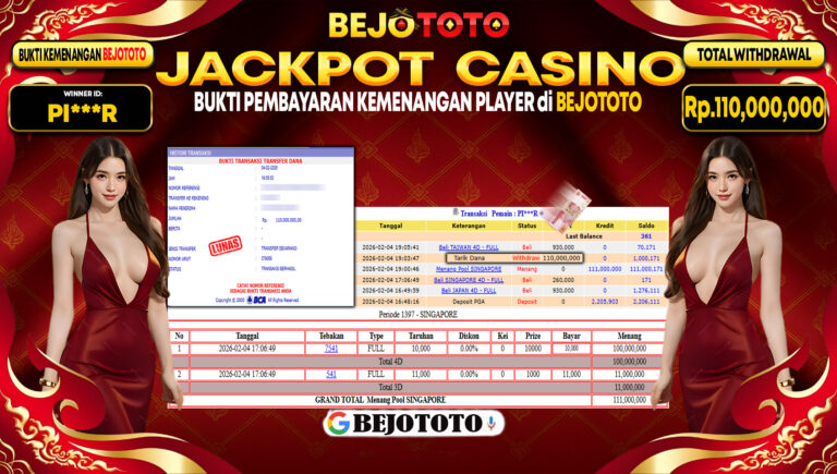 BEJOTOTO JACKPOT TOGEL SINGAPORE POOLS Rp.110,000,000,- LUNAS!!