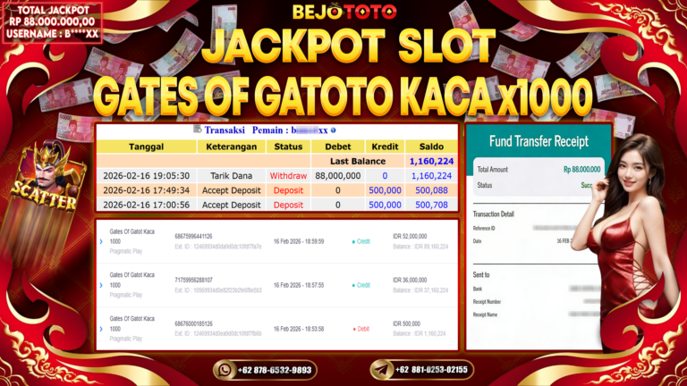 BEJOTOTO – Selamat kepada User id : B****XX Telah berhasil mendapatkan kemenangan besar pada permainan SLOT PRAGMATIC PRAGMATIC GATES OF GATOT KACA 1000 Dengan kemenangan Sebesar Rp.88,000,000,-. Setelah mengisi formulir withdraw dengan kurung waktu hanya 5 – 10 menit pihak BEJOTOTO sudah melakukan transfer kepada pemilik Userid dan dana sudah dapat di cairkan oleh pemenang. Bukti pembayaran yang kami berikan merupakan bukti…