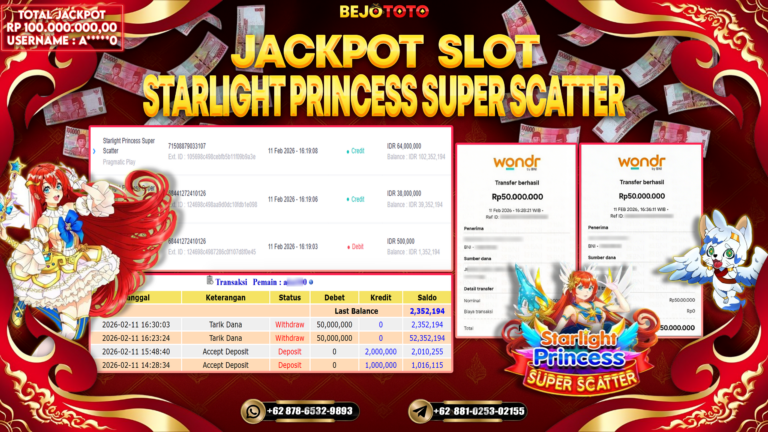 BEJOTOTO JACKPOT PRAGMATIC STARLIGHT PRINCESS SUPER SCATTER Rp.100,000,000,- LUNAS!!