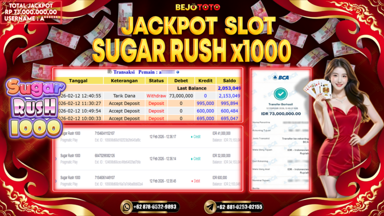 BOBATOTO – Selamat kepada User id : A****** Telah berhasil mendapatkan kemenangan besar pada permainan SLOT PRAGMATIC SUGAR RUSH 1000 Dengan kemenangan Sebesar Rp.73,000,000,-. Setelah mengisi formulir withdraw dengan kurung waktu hanya 5 – 10 menit pihak BEJOTOTO sudah melakukan transfer kepada pemilik Userid dan dana sudah dapat di cairkan oleh pemenang. Bukti pembayaran yang kami berikan merupakan bukti pembayaran yang SAH…