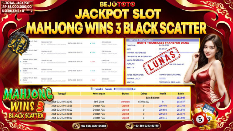BEJOTOTO JACKPOT PRAGMATIC MAHJONG WINS 3 – BLACK SCATTER Rp.85,000,000,- LUNAS!!