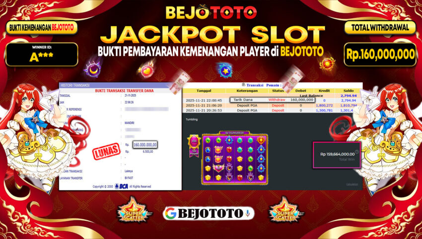 BEJOTOTO – Selamat kepada User id : A*** Telah berhasil mendapatkan kemenangan besar pada permainan SLOT PRAGMATIC PRAGMATIC STARLIGHT PRINCESS SUPER SCATTER Dengan kemenangan Sebesar Rp.160,000,000,-. Setelah mengisi formulir withdraw dengan kurung waktu hanya 5 – 10 menit pihak BEJOTOTO sudah melakukan transfer kepada pemilik Userid dan dana sudah dapat di cairkan oleh pemenang. Bukti pembayaran yang kami berikan merupakan bukti pembayaran yang SAH / VALID yang langung di dapatkan melaui tanda transfer transaksi dari Bank yang di tuju.
