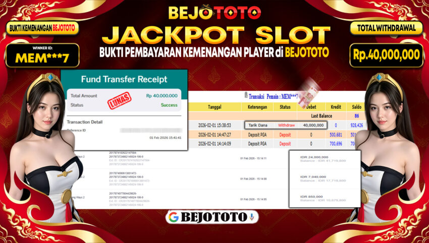 BEJOTOTO – Selamat kepada User id : MEM***7 Telah berhasil mendapatkan kemenangan besar pada permainan  SLOT MAHJONG WAYS-2  Dengan kemenangan Sebesar Rp.40,000,000-. Setelah mengisi formulir withdraw dengan kurung waktu hanya 5 – 10 menit pihak BEJOTOTO sudah melakukan transfer kepada pemilik Userid dan dana sudah dapat di cairkan oleh pemenang. Bukti pembayaran yang kami berikan merupakan bukti pembayaran yang SAH / VALID yang langung di dapatkan melaui tanda transfer transaksi dari Bank yang di tuju.