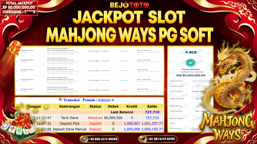 BEJOTOTO JACKPOT SLOT MAHJONG WAYS Rp.80,000,000- LUNAS!!